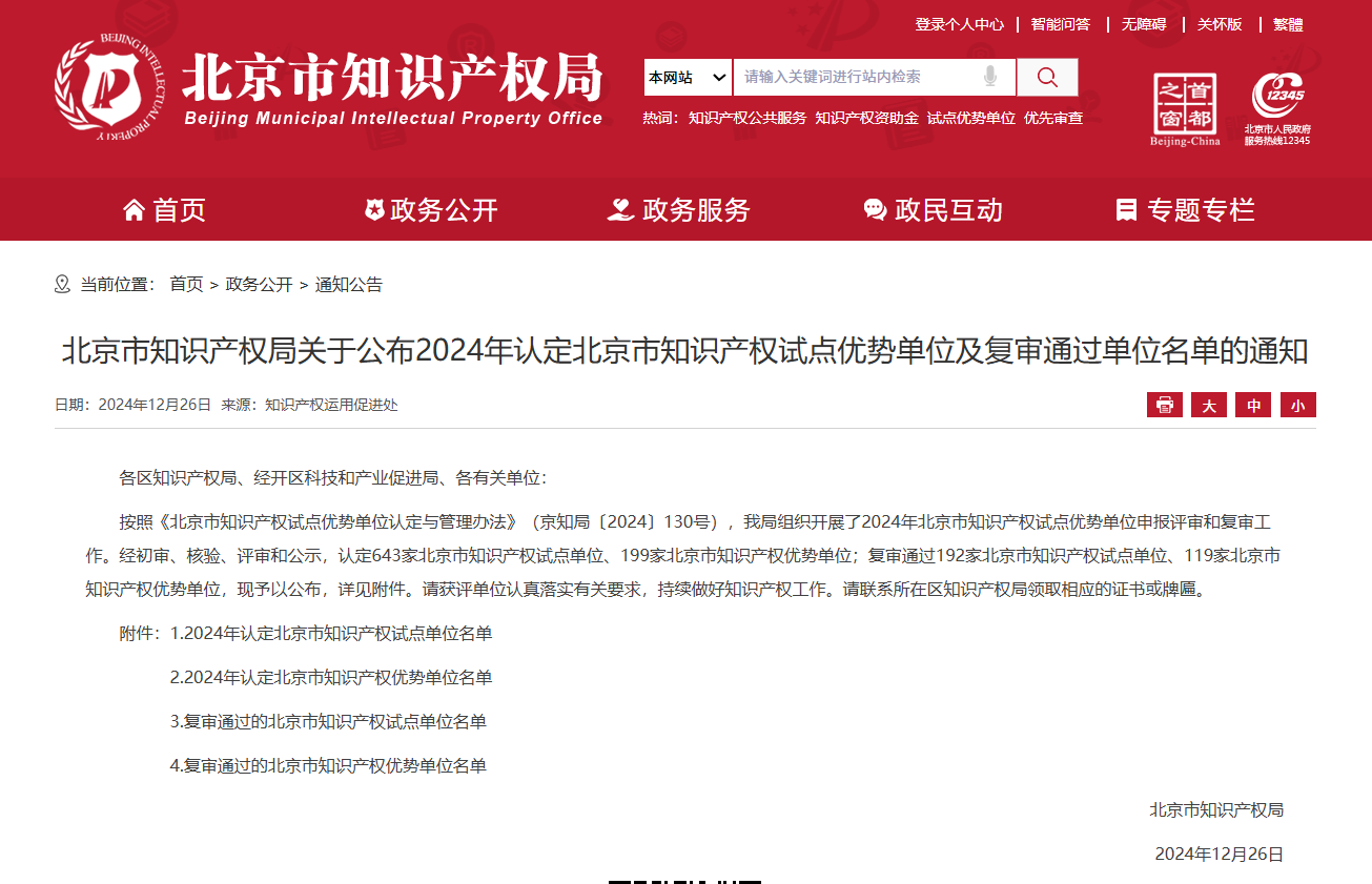 2024年12月26日,北京市知識產(chǎn)權(quán)局發(fā)布《關(guān)于公布2024年認(rèn)定北京市知識產(chǎn)權(quán)試點優(yōu)勢單位及復(fù)審?fù)ㄟ^單位名單的通知》。經(jīng)過嚴(yán)格初審、核驗和評審程序,北京康吉森自動化技術(shù)股份有限公司(以下簡稱“康吉森股份”)以卓越的科技研發(fā)實力、顯著的成果轉(zhuǎn)化能力以及完善的知識產(chǎn)權(quán)管理體系,成功被認(rèn)定為“北京市知識產(chǎn)權(quán)試點單位”。